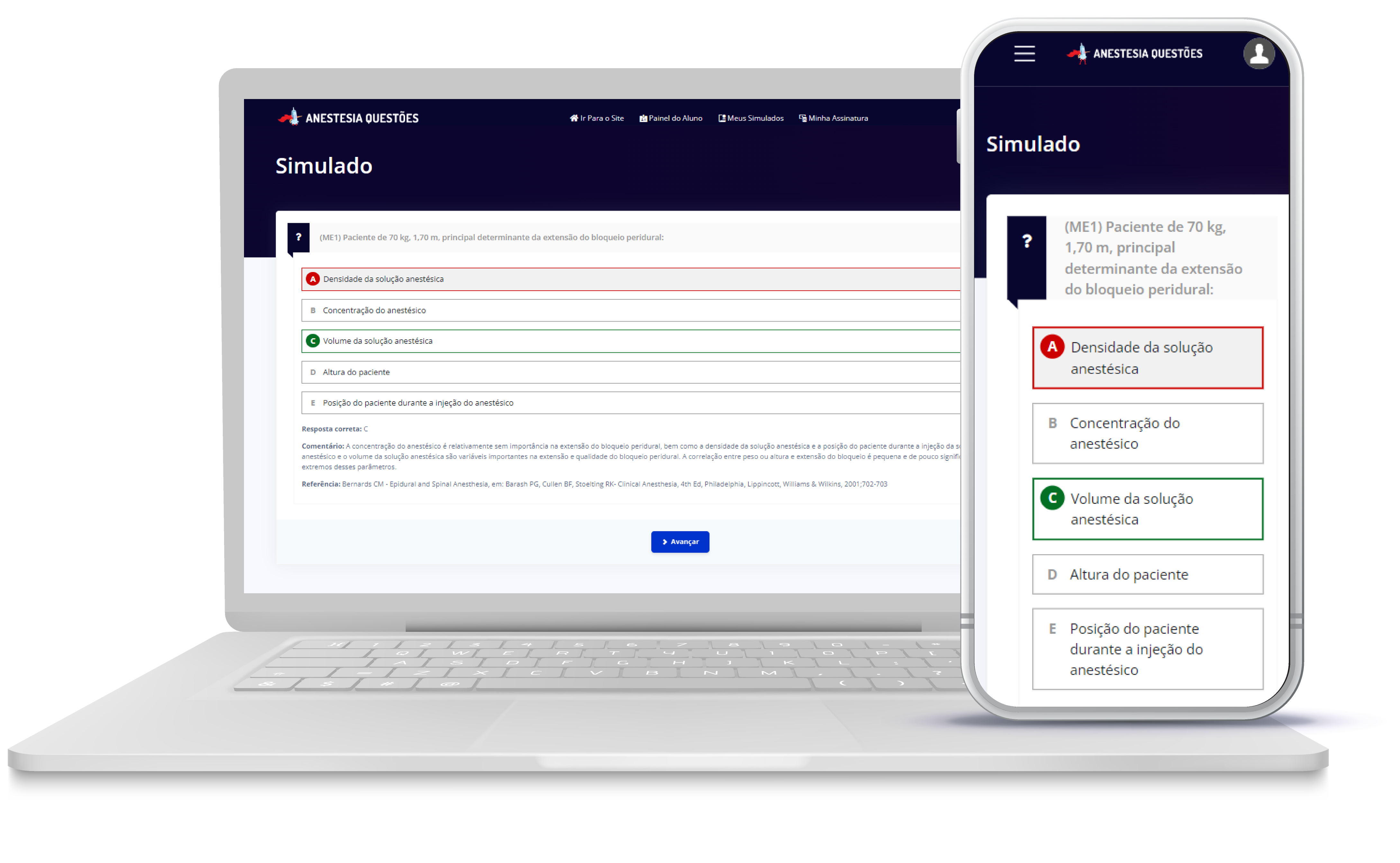 Imagine a conveniência de estudar em qualquer lugar e a qualquer momento. Com a nossa plataforma otimizada para dispositivos móveis, você pode aproveitar cada minuto do seu dia para revisar questões, absorver conhecimento e se preparar para as provas de Anestesiologia.
